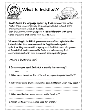of Inuktitut through reading passages, maps, and interactive questions.