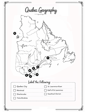 • Quebec map labeling worksheet