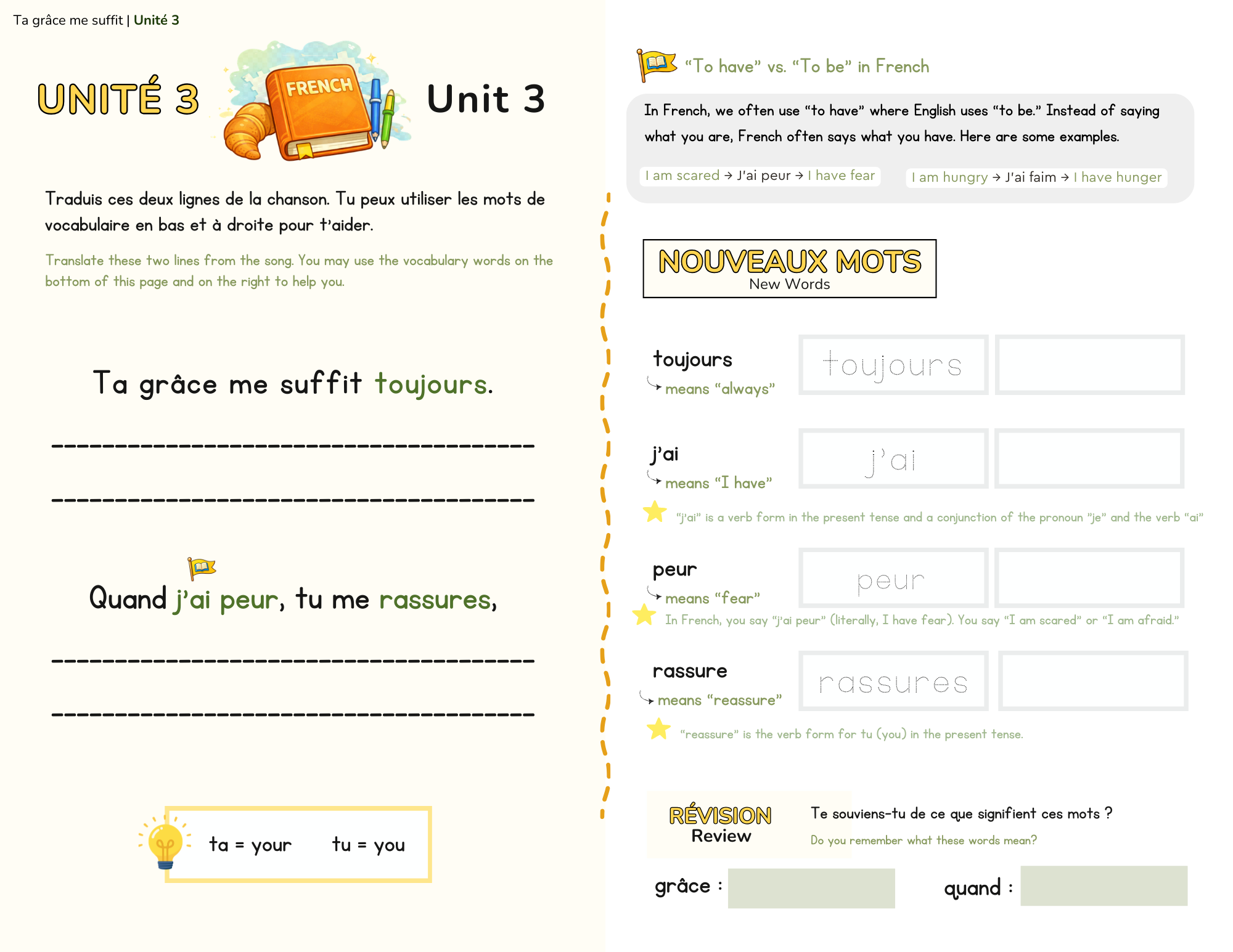 Introduce children to French in a meaningful, structured way with Ta Grâce Me Suffit,