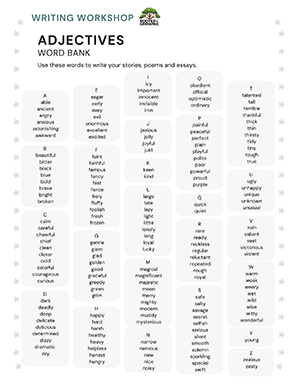 • Adjectives word bank with descriptive vocabulary